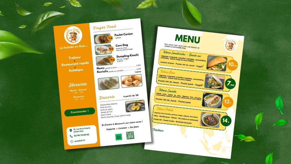 Un design qui met en appétit 😋. Une carte de restaurant claire améliore l’expérience client et valorise vos plats… ce qui peut donner envie de goûter toute la carte !!